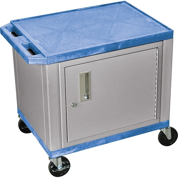 H Wilson® Tuffy AV cart in blue color measures 26″ x 24″ x 18″ and has 2 shelves made of recycled materials. Thermoplastic resin cart has nickel cabinet that gives an attractive look to your busy work environment.