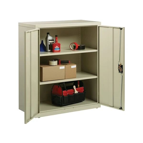 - Storage cabinet provides a concealed storage solution that is useful in a variety of places including your home, garage, basement, business, industrial, education, hospitality, and healthcare