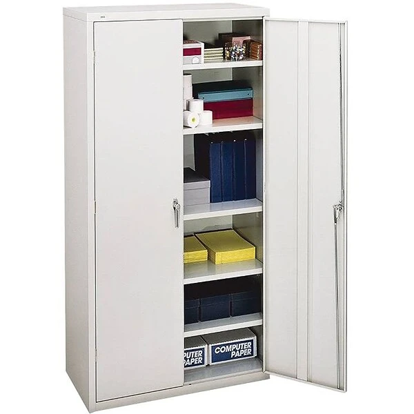 HON® Brigade® 6-Shelf assembled storage cabinet in light gray color measuring 72″ x 36″ x 18″ features three-point locking system for added safety. Cabinet has satin chrome double handles that helps to secure multiple doors/drawers.