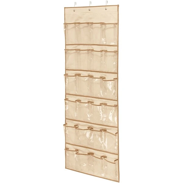 Honey Can Do 24 Pocket Otd shoe organizer in beige color features hanging hooks for easy suspending. Organizer measuring 57″ x 3″ x 21″ can be used to store jewelry, scarves, craft supplies, toys, handheld electronics and more.