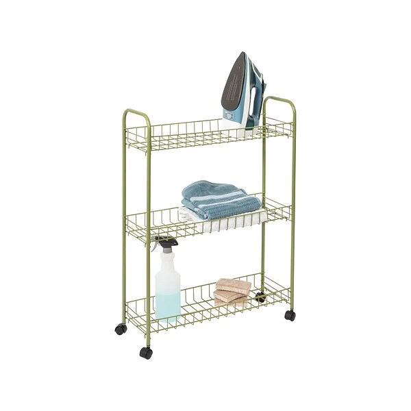 - Constructed from tinted steel in olive green, the cart resists rust, even in the dampest laundry room