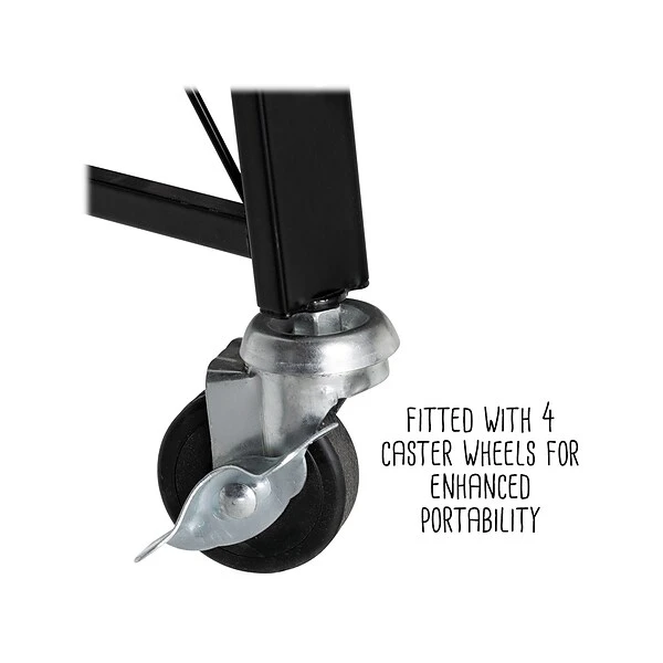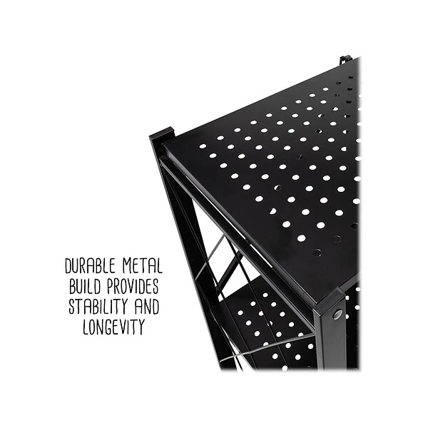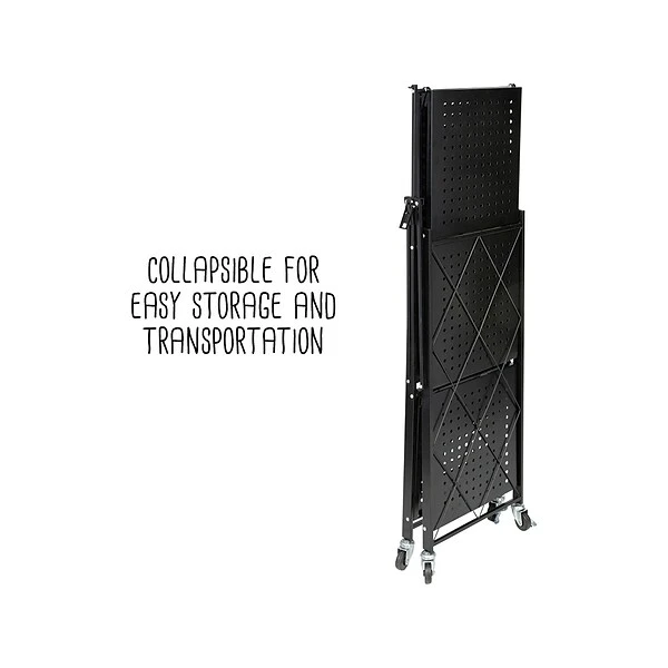 When you unfold this Honey-Can-Do shelf on wheels, you are opening a world of possibilities. The four casters make it a breeze to move the cart around, while its three tiers of shelves provide ample storage space: perfect for plants, cooling baked goods, or as a pop-up bar for parties. Looking for a portable shelf for craft fairs or market booths? With its durable metal build, black finish, geometric wire detailing, and collapsible design, this is a home run. The black metal shelves won’t be bothered by the sun or rain. Plus, the open geometric sides allow items to be viewed from all angles, so customers won’t miss a thing.