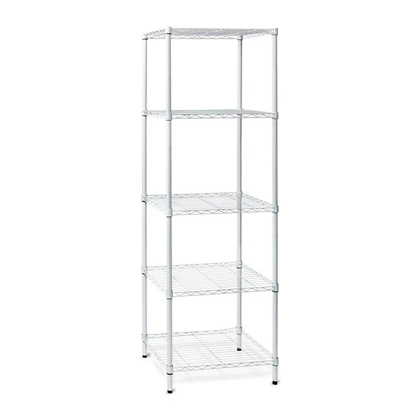 Honey-Can-Do SHF-01055 5-Tier Adjustable Shelving Unit, White. Create visible, accessible storage space instantly with Honey-Can-Do industrial shelving systems. Contemporary white finish and 72″ steel frame make this unit the perfect blend of style and functionality. Durable enough for the mudroom, garage, or commercial kitchen; this unit is capable of withstanding up to 250lbs per shelf. Adjustable shelves allow you to change the configuration as your storage needs evolve. Combine multiple units to create a customized storage wall. The no-tool assembly allows you to construct in minutes a shelving unit that will last for years.
