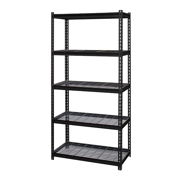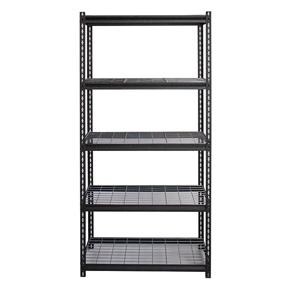 Control the clutter with the easy to clean Iron Horse 2300 lb. Wire Deck Rivet Shelving Units. These shelving storage units are easy to assemble and require no special tools, only a rubber mallet (not included). Choose to assemble the shelves vertically or horizontally to maximize options in your workspace. Each sturdy, black steel post and apron is coated with a rust-resistant finish to ensure a long lifespan. Zinc coated wire shelves rest on each post and are specifically made for heavy-duty usage. Iron Horse metal shelving units keep your office, warehouse, garage or other spaces organized and tidy. Total capacity of 2,300 lbs of evenly distributed weight.