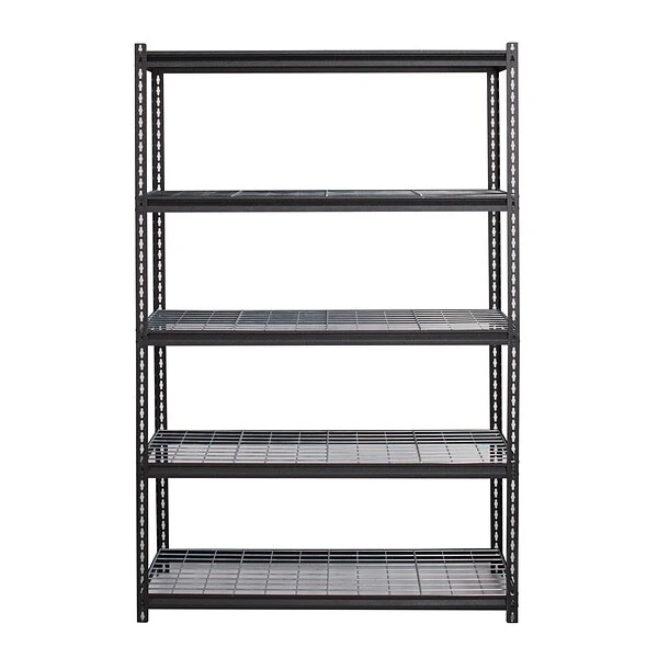 Control the clutter with the easy to clean Iron Horse 2300 lb. Wire Deck Rivet Shelving Units. These shelving storage units are easy to assemble and require no special tools, only a rubber mallet (not included). Choose to assemble the shelves vertically or horizontally to maximize options in your workspace. Each sturdy, black steel post and apron is coated with a rust-resistant finish to ensure a long lifespan. Zinc coated wire shelves rest on each post and are specifically made for heavy-duty usage. Iron Horse metal shelving units keep your office, warehouse, garage or other spaces organized and tidy. Total capacity of 2,300 lbs of evenly distributed weight.