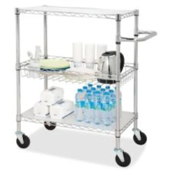 - Sturdy bottom shelf is designed for larger packages and bulk goods