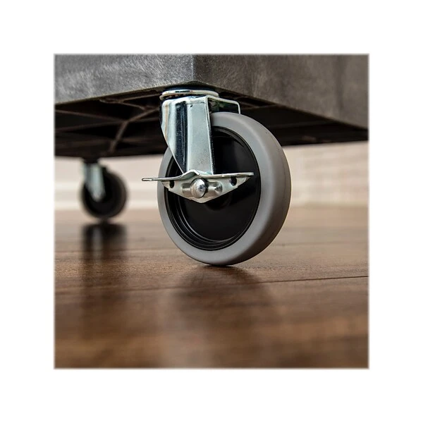 - Four 4″ full-swivel casters with two locking brakes
