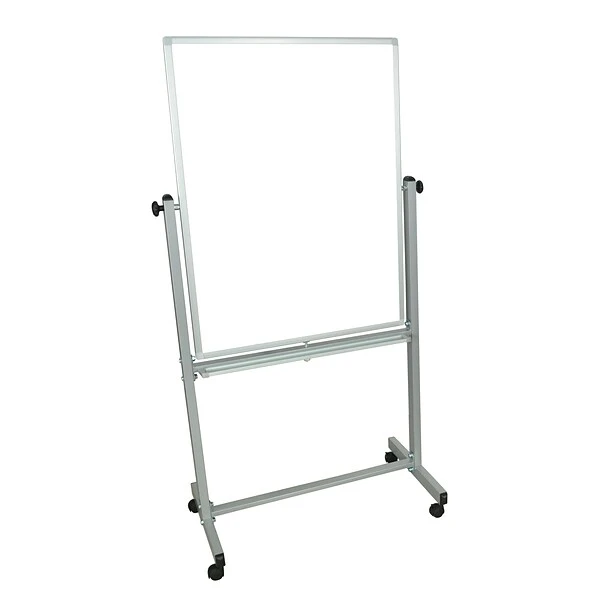 Luxor magnetic whiteboard features magnetic surfaces on both sides and 4 casters for easy mobility.