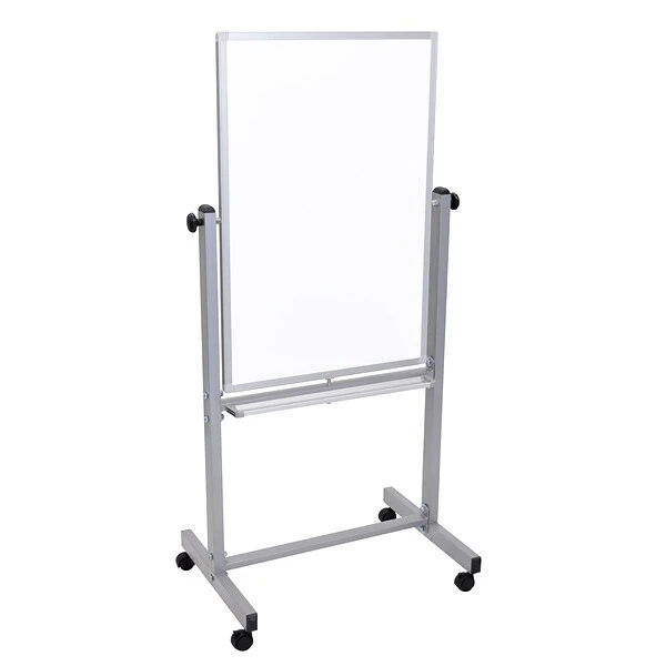 Place this Luxor whiteboard at the front of the room to use during presentations. Fill up one side of the board, and flip it to continue on the other side. The handy magnetic surface makes it easy to attach a magnetic eraser and marker right to the whiteboard. Abundant Marking Space, use both sides of this double-sided whiteboard to get your point across. Fill the front with points you want the group to deliberate, and flip it to the back to write down their suggestions. Lock the board in place with the knob adjustments to provide a secure writing surface. Stick a magnet to this whiteboard, and use it to clip notes to the surface. Add magnetic accessories to keep all your supplies close at hand. Store magnetic erasers and markers on one side of the board, and use the other side for your presentation since both sides have magnetic qualities. Mobile Work Surface, prepare your notes on this magnetic whiteboard, and roll it down the hall for the meeting using the four two-inch furniture casters. Keep it secure while you do your presentation by locking the casters in place.