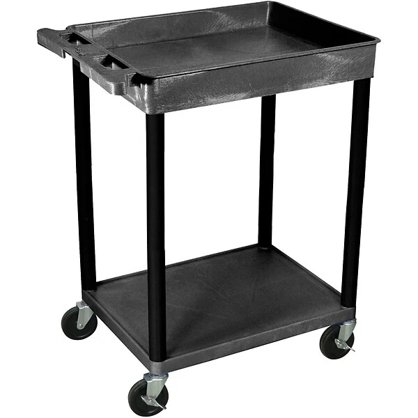 Luxor® STC Series 2 shelves top tub and bottom flat shelf cart in black color measures 35 3/4″ x 24″ x 18″ and has four 4″ casters for easy movement. Cart is made of high density polyethylene to offer durability.