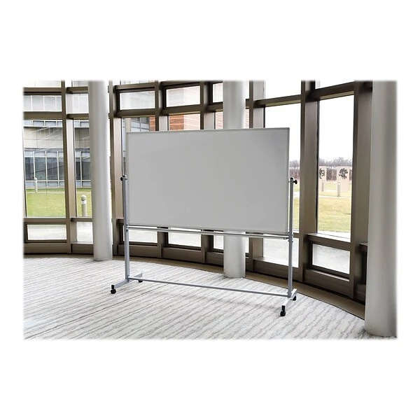 Durably crafted from stain-resistant whiteboard and featuring a chrome-finished frame for added structural support, this mobile whiteboard holds up to extended use and is easily wiped clean with a dry cloth or eraser. The dual-sided whiteboard locks into place for ease of use.