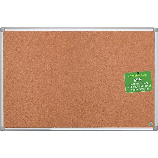 Mount this cork bulletin board horizontally or vertically for creating an eye-catching visual display. Its aluminum frame is lightweight and durable, and it comes with an easy four-corner mounting system for attaching this MasterVision Earth cork board to the wall.