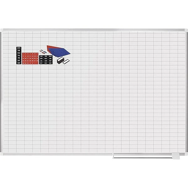 Create detailed plans on the porcelain surface of this planning board for clear communication with your staff members or students. The 1″ X 2″ grid on this dry-erase board provide plenty of options to organize information. This planning board comes with a sliding aluminum pen tray that ensures you can keep pens and clips organized. The magnetic surface of this MasterVision silver-frame planning board lets you easily post papers.