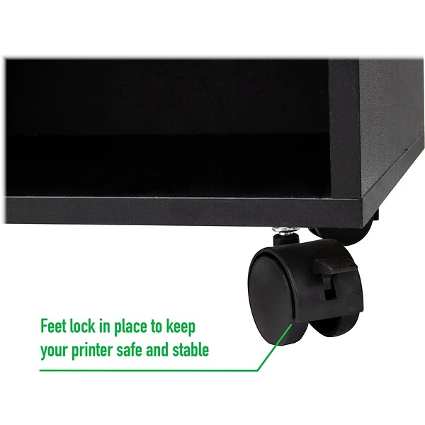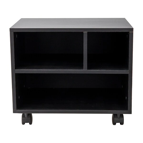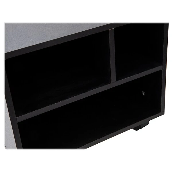 - Sturdy MDF construction offers strong support for up to 70 lbs. of your supplies; comes in black