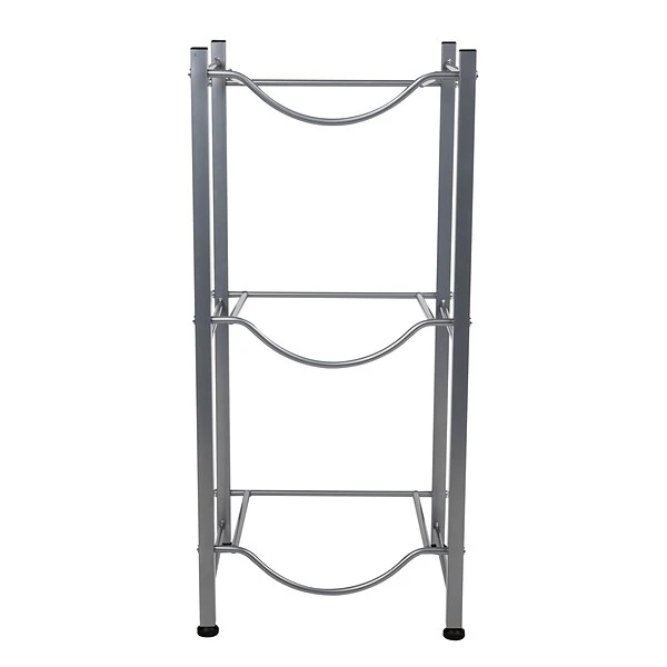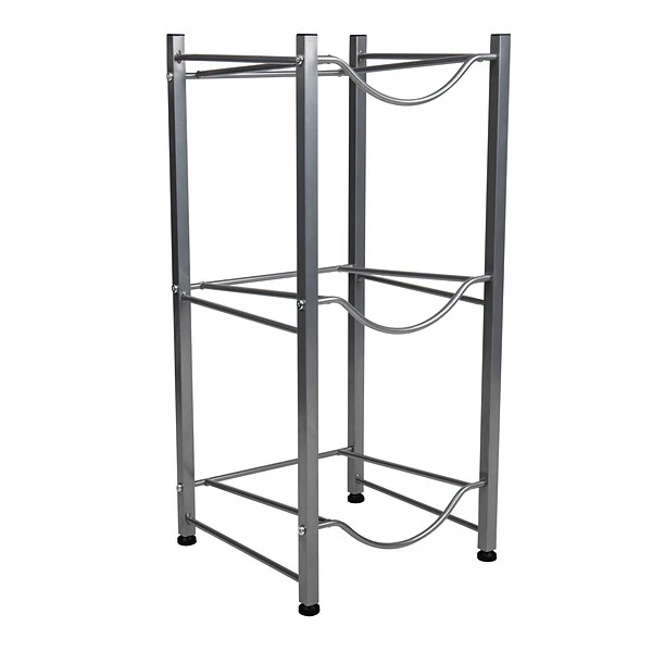 Have no where to put the extra jugs of water in your home? Now you can keep your water jugs stacked in one spot! No need to hide them in a room, or have them in your way in the kitchen. Instead get this sturdy, metal rack to hold all of your water bottle jugs.