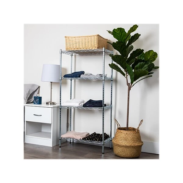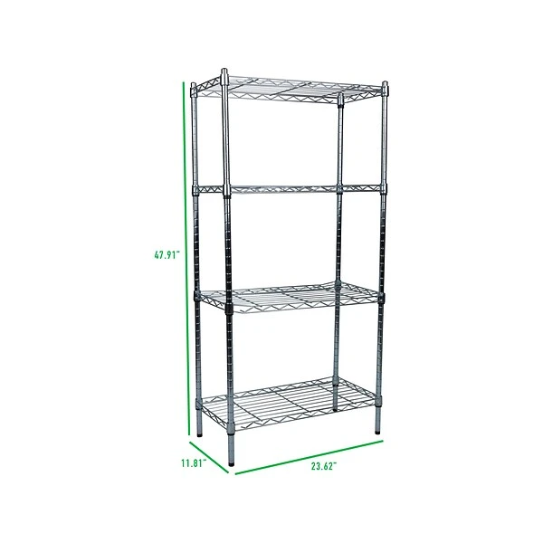 - Four-tier shelving unit for basement, garage, restaurant, warehouse, retail, or office