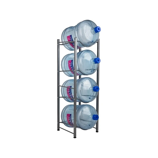 - Stack your water jugs with this heavy-duty tiered storage shelf constructed from stainless steel