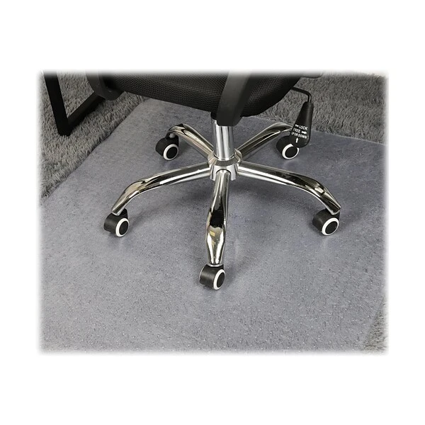 From Home to Office: Zoom on Your Office Mat This PVC floor mat keeps you mobile and provides you the comfort you need while working. It works best on low pile carpeting and has molded cleats to keep it in place. The mat is made from pliable PVC so this rugged office mat is less likely to tear or break. Avoid constantly replacing thin, torn-up, cracked computer mats. To clean your office mat, simply wipe with a soft cloth using mild soap and water. This mat ships flat and there’s no assembly required.