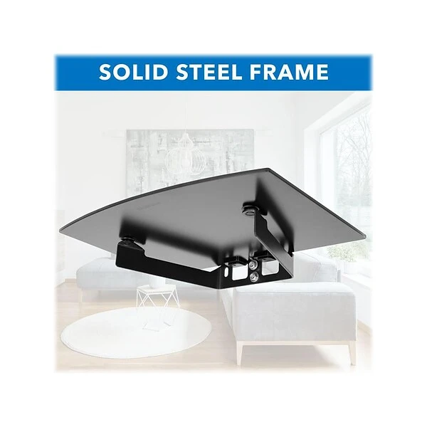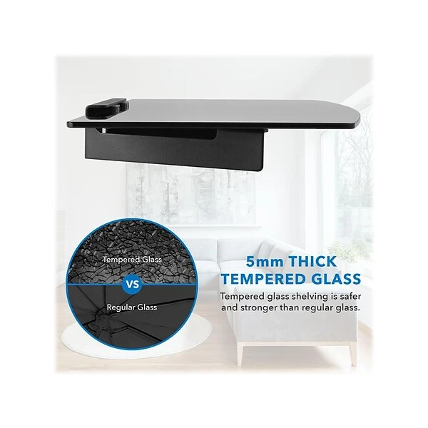 This Mount-It! floating glass shelf exudes elegance with a low-profile design that gives you function, form, and style without taking up additional space. It’s an instant upgrade to the visual appeal and function of your home entertainment setup. Designed with a sleek and modern aesthetic in mind, the component wall-mounted shelf is perfect for a wide variety of uses. The shelf is built using a combination of high-grade materials. The solid steel frame is precision-engineered, and the 0.2″ thick tempered glass provides a durable surface for your devices. It’s perfect for holding gaming consoles, A/V components, electronics, karaoke machines, and more.