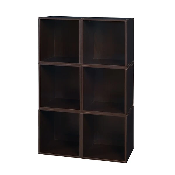Let your creativity run wild with Cubo! This innovative set of 6 storage cubes by Niche are designed to fasten together in any direction! Connect them in any way you like. In a row, in a pyramid, in a U or L shape or countless other configurations. Start small and add on later. Cubes connect to one another with spring pins, making it easy to customize and create a storage system just for you with a single cube to a set of 12 or more. Niche storage cubes are actually cubes! With interior dimensions of 12 1/8″ x 12 1/8″ x 12 1/8″, they can be used in any direction. There’s no “right” way to use them because all sides measure the same! Who ever said all cubes had to face the front like a bookcase? Cubo storage cubes can attach together in any direction, which opens up a myriad of new design possibilities. Turn one to the right, turn another to the left. Keep one facing front and still another facing the back. Perfect to clean up clutter in closets, entryways, laundry & storage rooms, as a bookcase, nightstand or media storage, in a classroom or children’s room-these cubes fit anywhere! Its rich dark Truffle finish shows subtle wood grain and is sure to please and coordinates with the rest of the Niche line. No tools LockDowel assembly allows pieces to simply snap together and lock into place for a sturdy, hassle-free build in less than 2 minutes. No more searching for the right size screwdriver or dropping tiny screws. Just snap into place and go. Less hardware and fewer small parts means less plastic packaging and less waste. Add on, arrange and rearrange Niche Foldable Fabric Bins for a fresh, new custom look whenever you like!