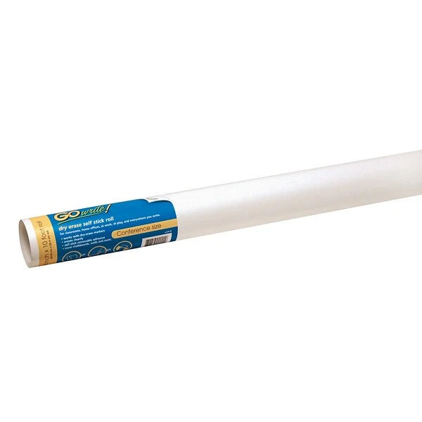 - Self-adhesive, dry-erase roll makes it easy to turn almost any surface into a dry-erase board.