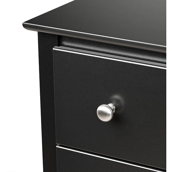 Prepac™ 5-Drawer chest in black finish is constructed from CARB-compliant laminated composite woods which give an elegant look to any room. Drawer chest has a sturdy top to pile on your books, cell phone, alarm clock, lamp and more.