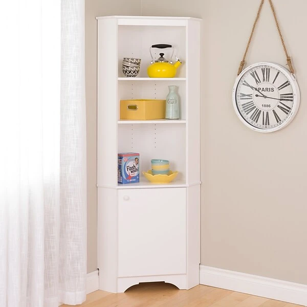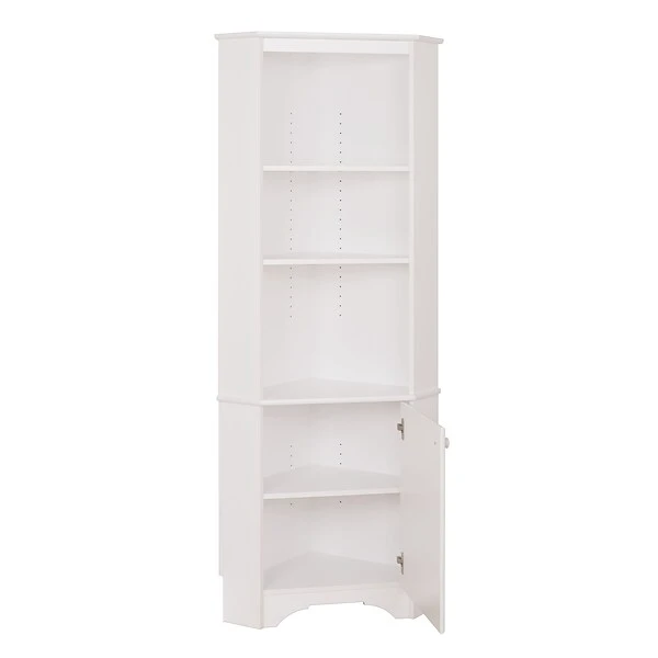 Make the most out of your unused corner spaces. This sophisticated, sturdy and functional 72” Tall Corner Cabinet includes 3 adjustable shelves to maximize the storage and organization of your personal items. This multipurpose cabinet is the perfect addition to any kitchen, entryway, bedroom or any other place you need extra storage. Open shelves on top provide plenty of space to showcase items while a solid MDF door finished with a soft profiled edge provides closed storage for items you prefer to remain hidden away.