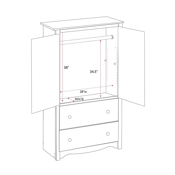 Prepac™ Monterey 2 door armoire in white finish is constructed from CARB-compliant laminated composite woods which give an elegant look to any room. Armoire has a sturdy top to pile on your books, cell phone, alarm clock, lamp and more.