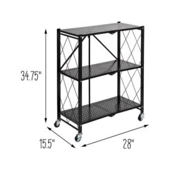 Honey-Can-Do 3-Shelf Metal Mobile Utility Cart With Lockable Wheels, Black (CRT-09584)