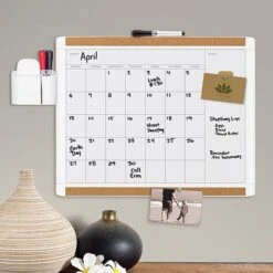 U Brands MOD 3-in-1 Magnetic Dry Erase Calendar Whiteboard, 20″ X 16″, Black And Grey Frame