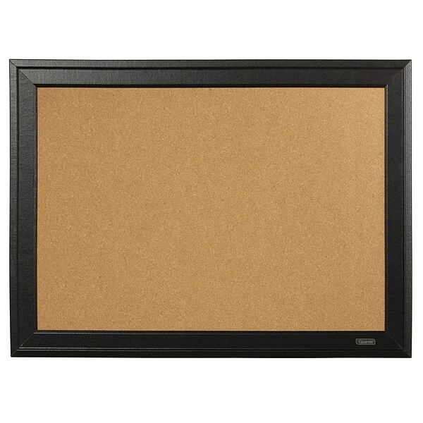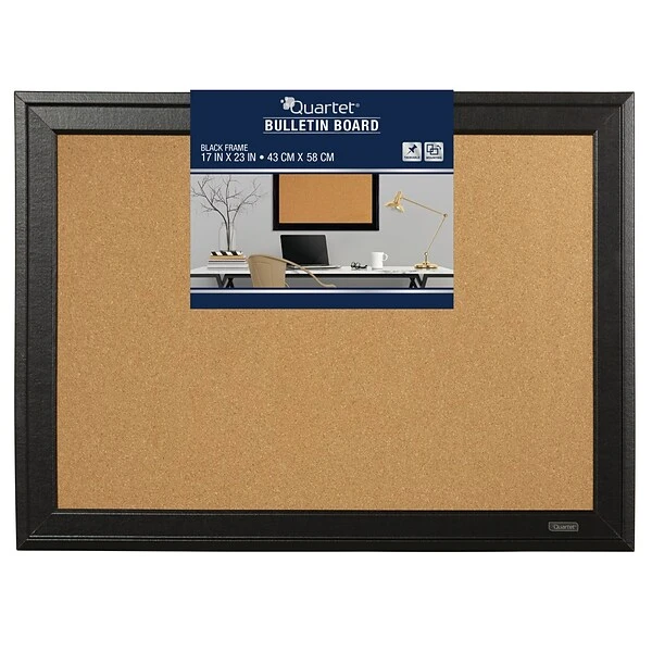 Keep personal notes, lists, or pictures close at hand by pinning them to this sleek cork board. With its black frame and natural cork surface, this board complements any decor in the home or workplace. The self-healing cork backing means that push pins and thumbtacks can be used repeatedly without causing unsightly damage. This Quartet cork board measures 17 inches by 23 inches and can be hung vertically or horizontally to meet your preferences.