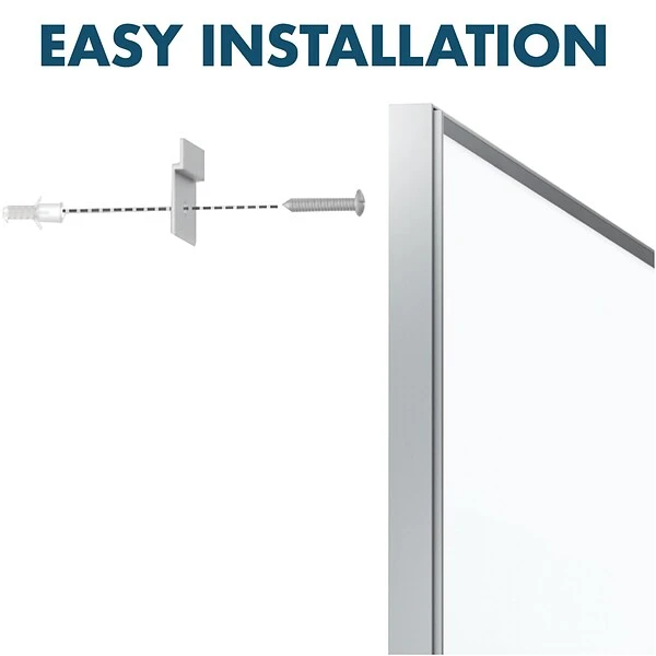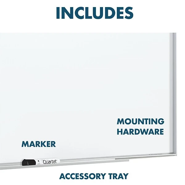 - Package contents: whiteboard, marker tray, dry-erase marker, Z-bracket mounting hardware
