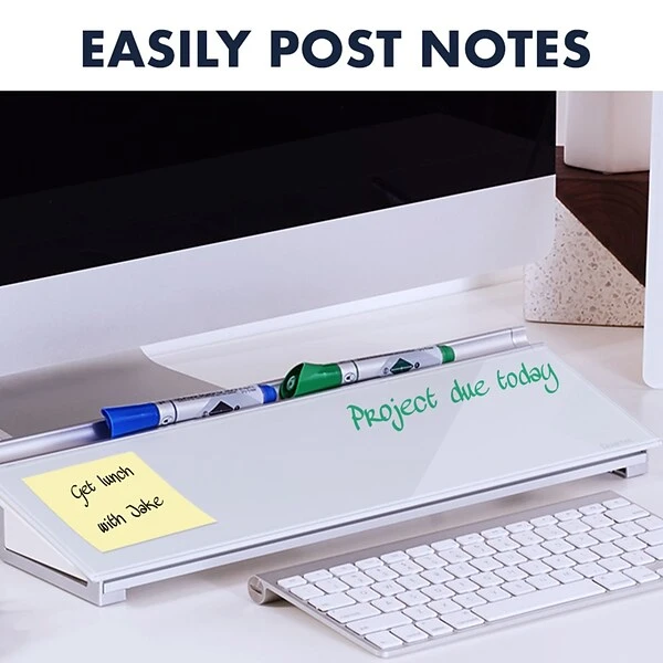 A glass dry-erase pad is sleek and clean, delivering an upscale look. Designed to replace a notebook or scrap paper on your desktop.