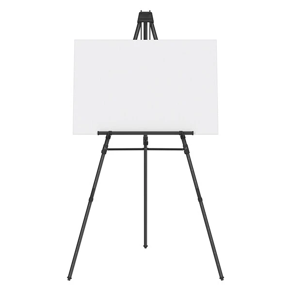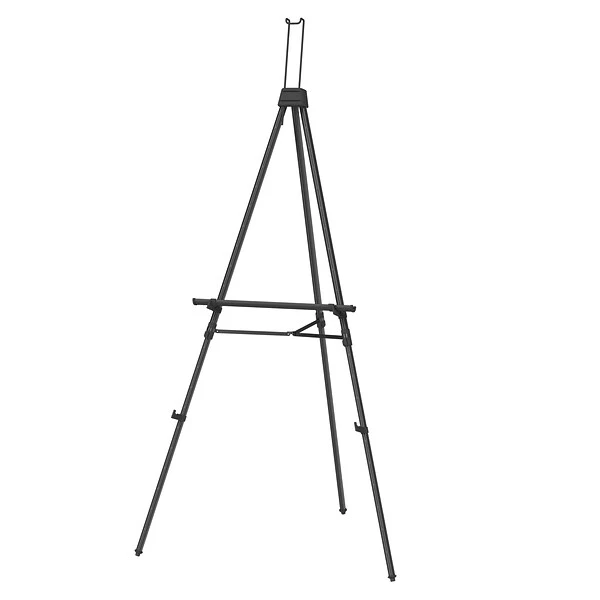 Teach courses, present reports and go over information with this heavy-duty display easel. With a 45-pound capacity, this easel is ideal for holding heavy signs or writing pads, while the adjustable height lets you easily accommodate crowds. This Quartet black aluminum display easel features a top clamp to keep papers and posters securely in place.