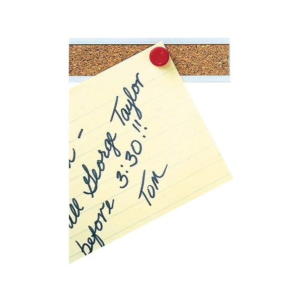 - Durable natural-cork bulletin bar holds documents and displays tightly in place only with push pins”