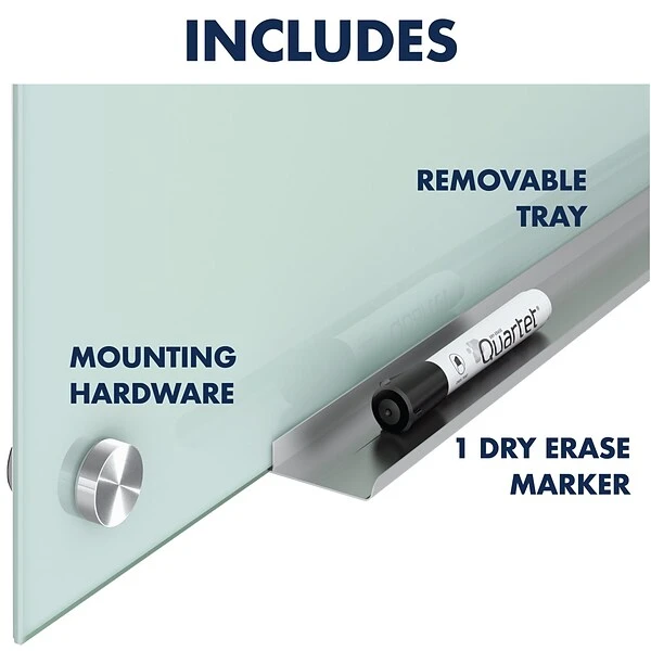 Invite employees to share ideas and concepts on this Quartet glass marker board. This Quartet Infinity Glass whiteboard measures 4 x 3 feet, offering a collaborative space in a classroom, home, or office., and the frosted texture creates a striking contrast for black or color markers.