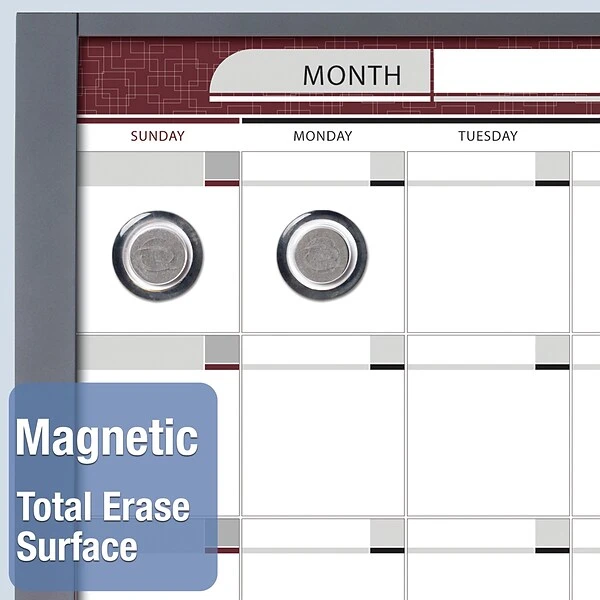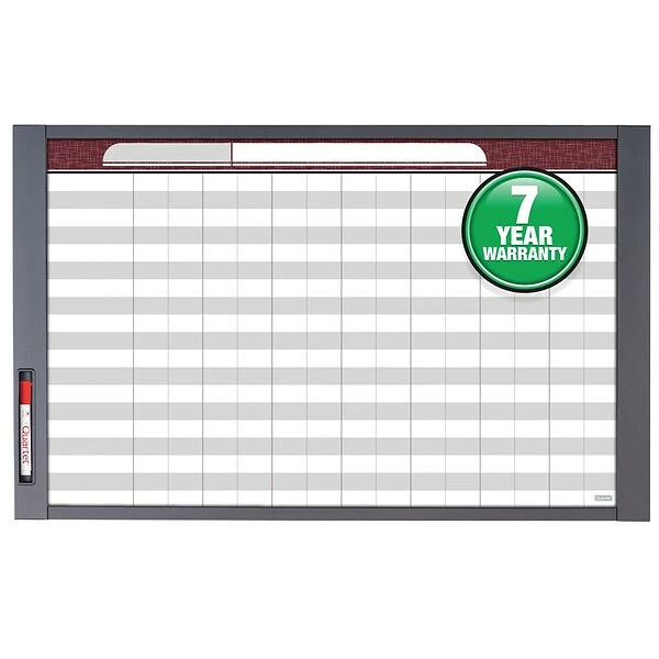 Use the online templates to build your custom whiteboard. Build from scratch or choose from the many pre-existing planner board, dry-erase calendar, workflow chart, and personnel board template designs. Being wiped the surface stays clean with no ghosting or staining. The 37.5 x 23-inch dry-erase surface is durable and magnetic. Pass-thru mounting system allows board to hang vertically or horizontally. Built-in marker tray and dry-erase marker are included.