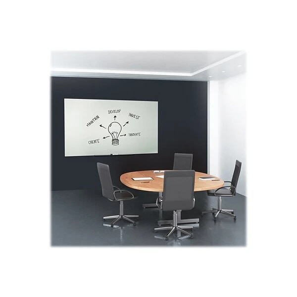 Present new ideas in visual form, then wipe everything away to start over again with this tempered-glass whiteboard. The frameless design and hidden mounting system give it a sleek, modern look, and the removable marker rail keeps accessories within reach. This Quartet dry-erase board is magnetic to let you post notes and printouts directly onto the surface.