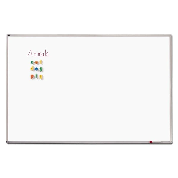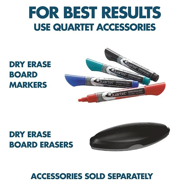 Mount this whiteboard on the wall in your home or office to keep everyone organized. The melamine surface supports light use, and the silver aluminum frame provides a professional look. This Quartet whiteboard comes with a dry-erase marker for immediate use, and the built-in tray keeps supplies close at hand.