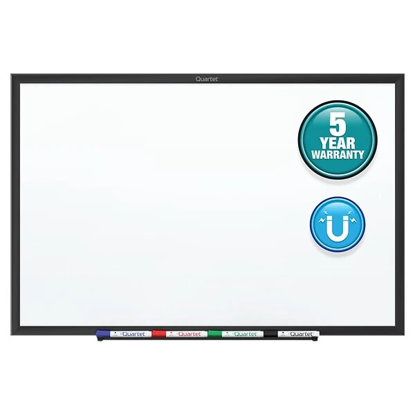 Write clear instructions, reminders, and other notes that the entire department can easily see with this magnetic whiteboard. The attached accessory tray provides quick access to markers, erasers, and other supplies, while the included mounting hardware makes assembly simple. This Quartet classic black aluminum-frame whiteboard is magnetic, allowing flyers, memos, and other papers to be conveniently secured.