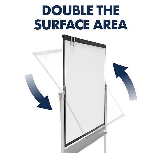 - Mobile presentation easel offers triple functionality: magnetic whiteboard, magnetic bulletin board, and flipchart stand