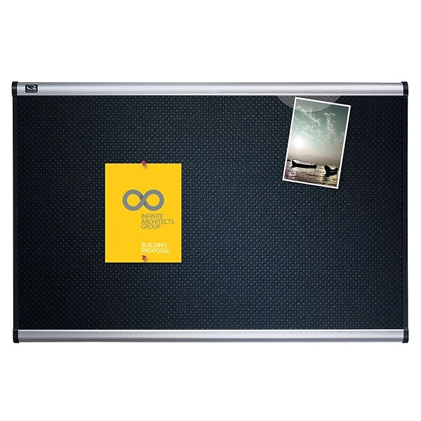 Use this large bulletin board to create a quick and convenient display of all important documents, memos, schedules, and more. This Quartet Prestige bulletin board features a self-healing, embossed foam backed by high-density fiberboard that firmly holds pins and a silver aluminum frame to help protect against wear and tear. Set up is easy with Quartet quick clips to secure material without damage and pass-through mounting hardware included.