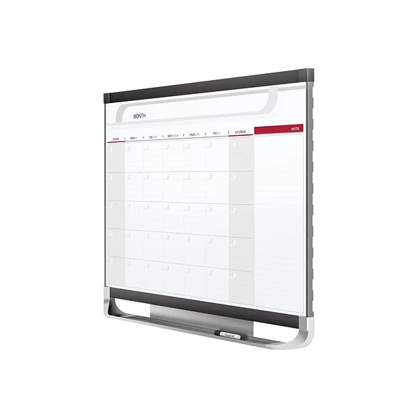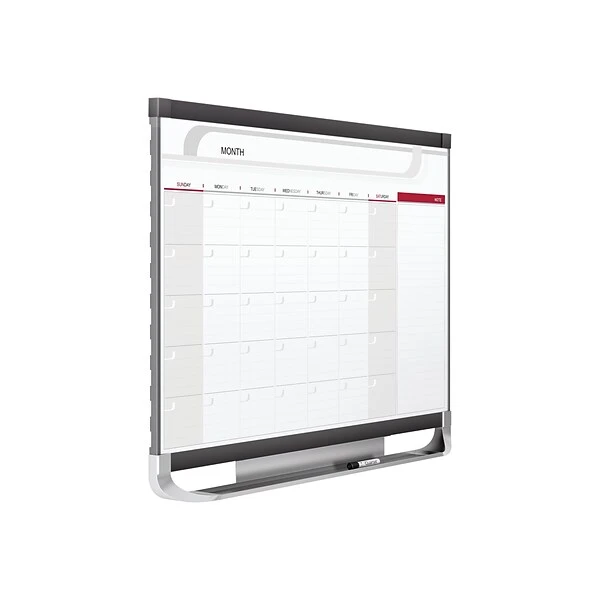 Stay on top of client meetings, events, and other upcoming appointments with this magnetic monthly calendar board. With a durable stain-resistant design, this calendar board stays clean, even with consistent use. This Quartet Prestige graphite-frame calendar board has a full-length tray for markers and other accessories and includes mounting hardware, so you can assemble it quickly.