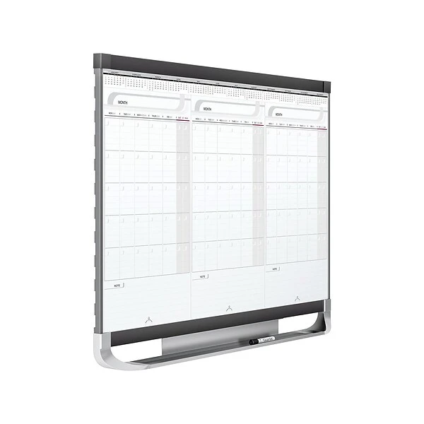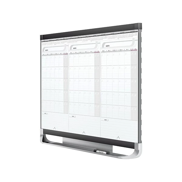 Get ready for the quarter with this three-month calendar board. The surface is smooth, durable and resists ghosting and stains, while the sliding panels let you keep months in chronological order. This Quartet Prestige calendar comes with mounting hardware, so assembly is quick and simple, and the built-in marker tray lets you keep supplies in easy reach.