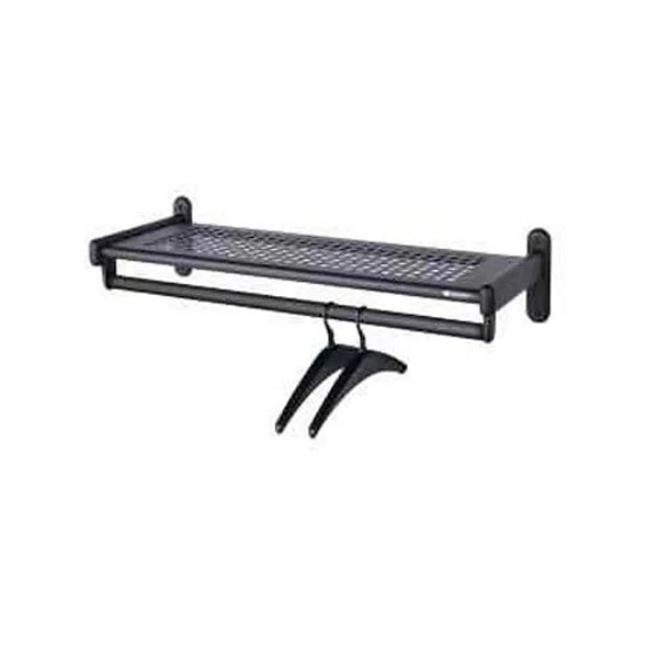 Quartet Garment rack featuring 1 shelf measures 36″ and has perforations on shelves for aeration to garments. Rack is made of powder coated steel for strength that can be fastened to wall with ease and has evenly indexed hanger rail.