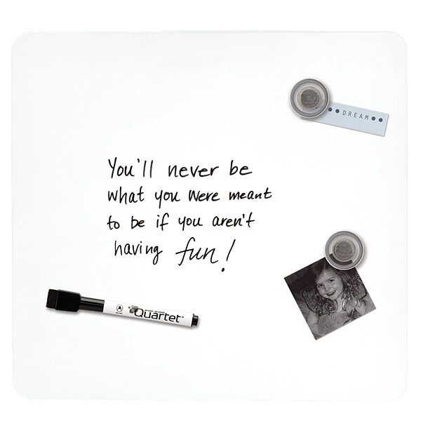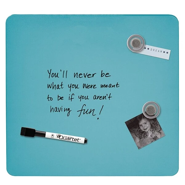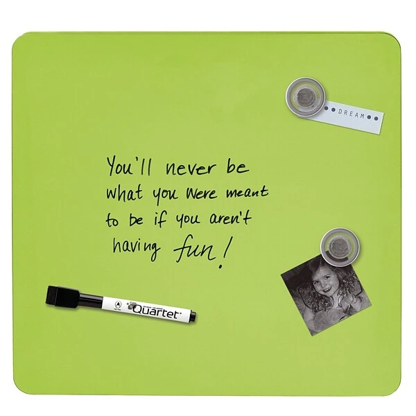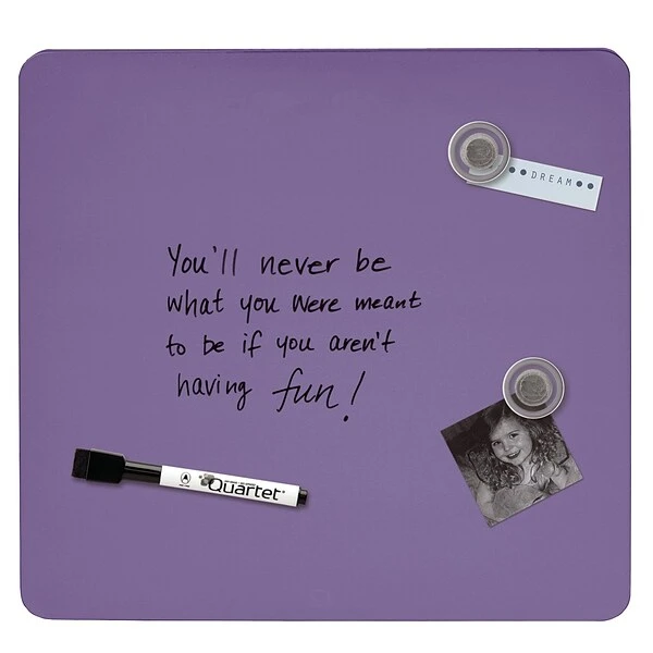 Brighten up your locker, a workspace, or another area with this assorted-color dry-erase board. The magnetic construction allows you to secure notes, memos, and other papers, while the included marker and two magnets make it easy to start using this board right away. This Quartet tin modular frameless square dry-erase board comes with mounting tape for added convenience. Assorted colors include white, blue, pruprle, or green. Color is chosen at random, no requests.