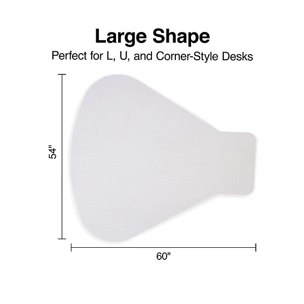 - Large shape perfect for L, U, and corner style desks, 54″W x 60″L