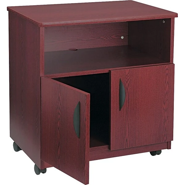 - Storage shelf has grommet cut-out for cable routing into lower cabinet