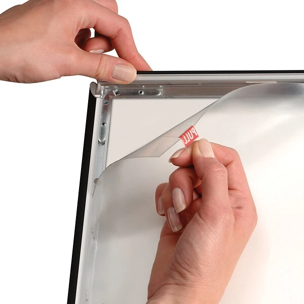 - Posters are kept clean behind a UV resistant, anti-glare PVC front sheet