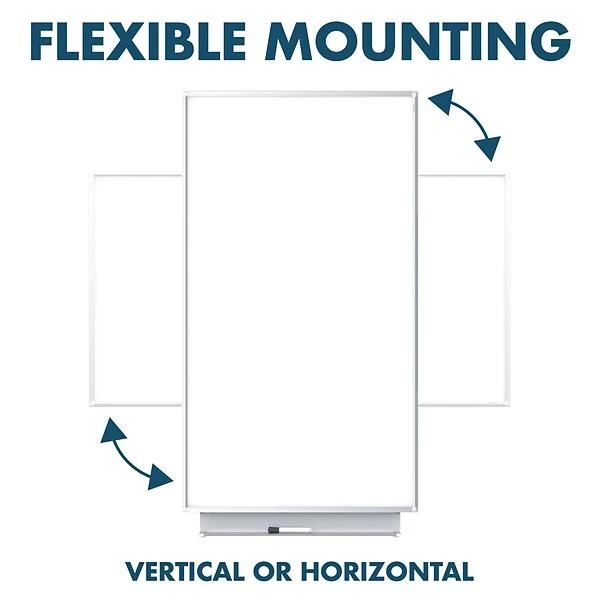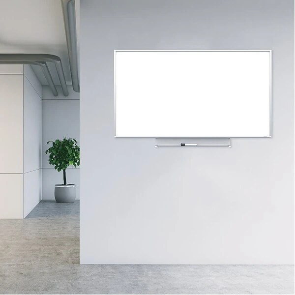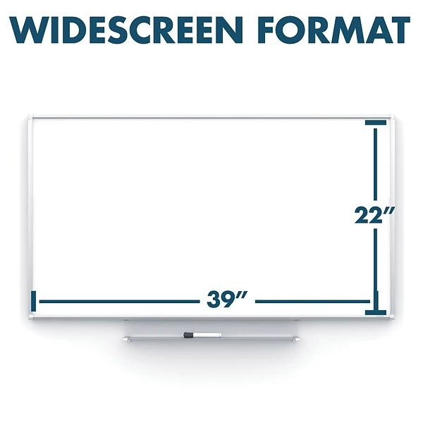 The Quartet® Silhouette™ Porcelain Magnetic Dry-Erase Board offers superior erasability for exceptional ghost and stain resistance. Slim frame design appears to float on the wall for a modern, minimalist look. Magnetic surface makes it easy to post documents and photos. Widescreen format with 16:9 aspect ratio. Simple to install with pass-through mounting. Hang vertically or horizontally. Board includes an accessory tray and a Quartet dry-erase marker. Comes with a limited lifetime warranty.